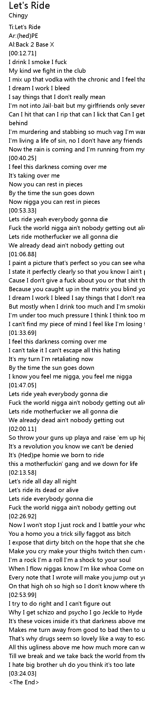 | [01:53.51] | Lets ride motherfucker we all gonna die |