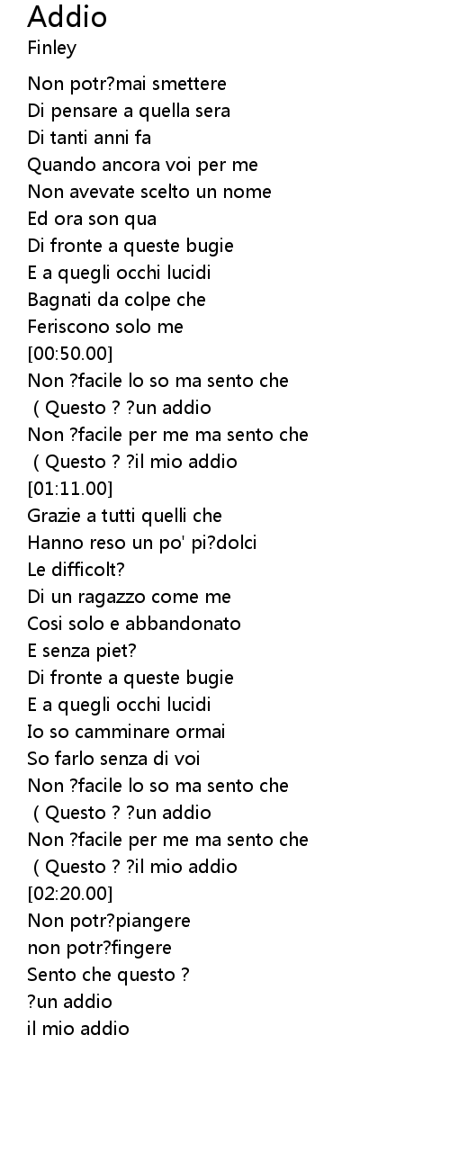 | [00:56.00] | Questo ? ? un addio |