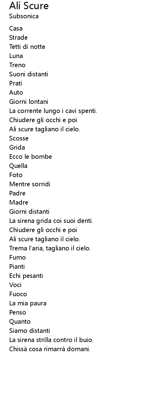 | Trema l' aria, tagliano il cielo. | |