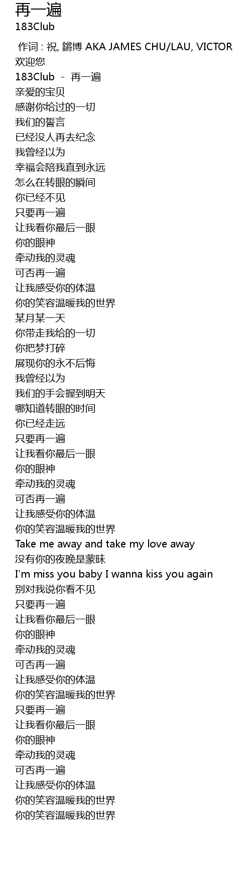 | [00:15.00] | 183Club - 再一遍 |