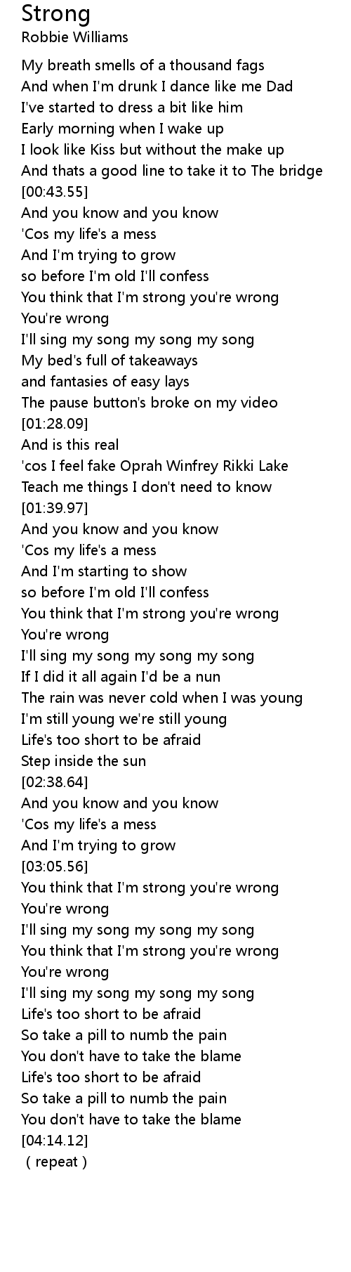 | [00:55.86] | You think that I' m strong you' re wrong |