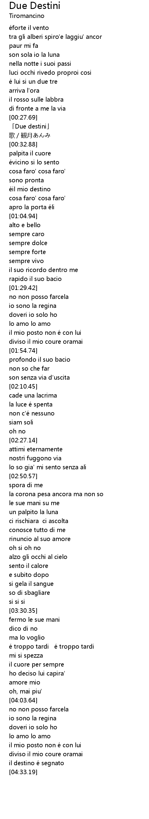 | [00:28.48] | 「Due destini」 |
