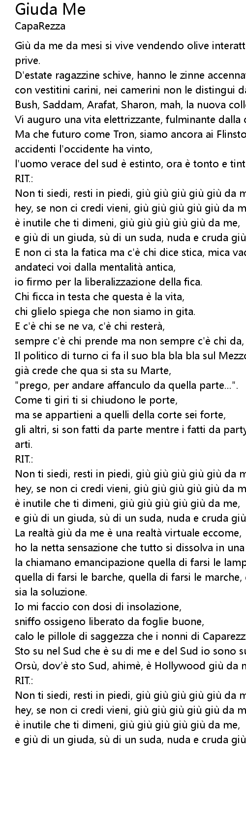 | e giù di un giuda, sù di un suda, nuda e cruda giù da me. |