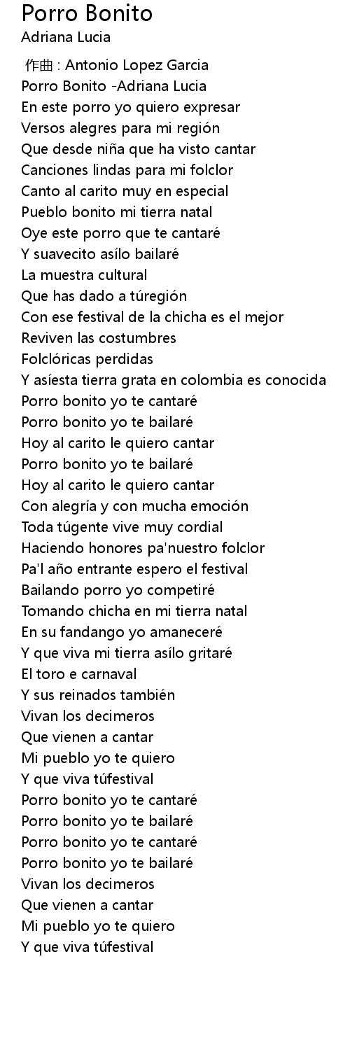 | [00:00.00] | Porro Bonito -Adriana Lucia |
