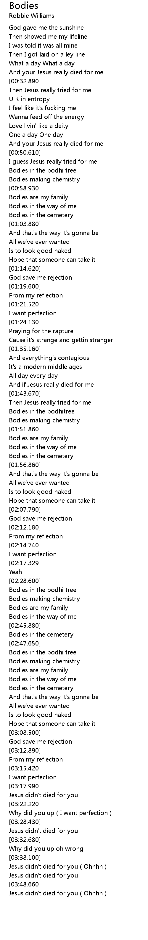 | [03:41.250] | Jesus didn' t died for you Ohhhh |