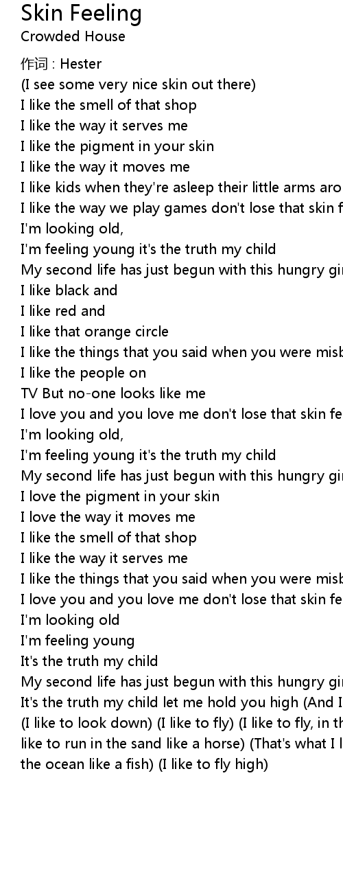 | I love you and you love me don' t lose that skin feeling | |