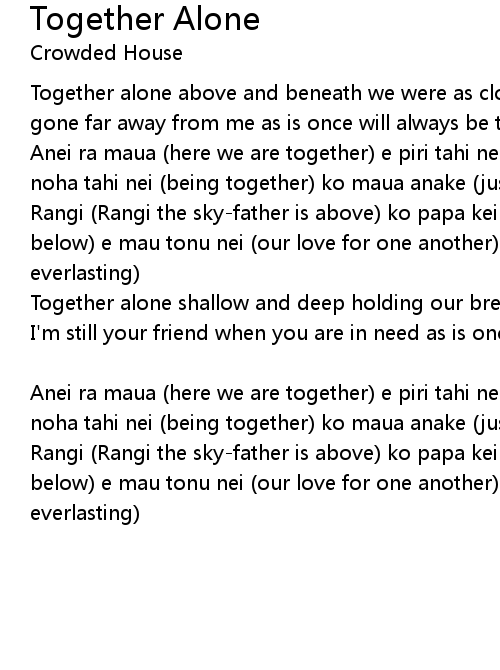 Together alone above and beneath we were as close as anyone can be now you are gone far away from me as is once will always be together alone |