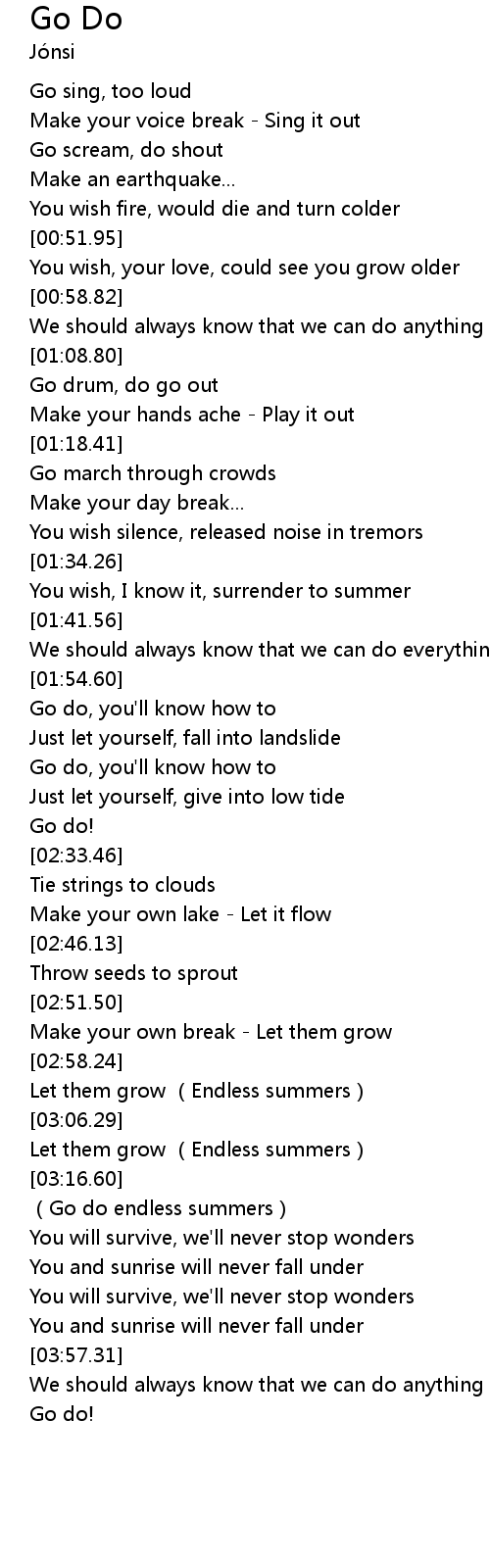 | [03:43.88] | You will survive, we'll never stop wonders |