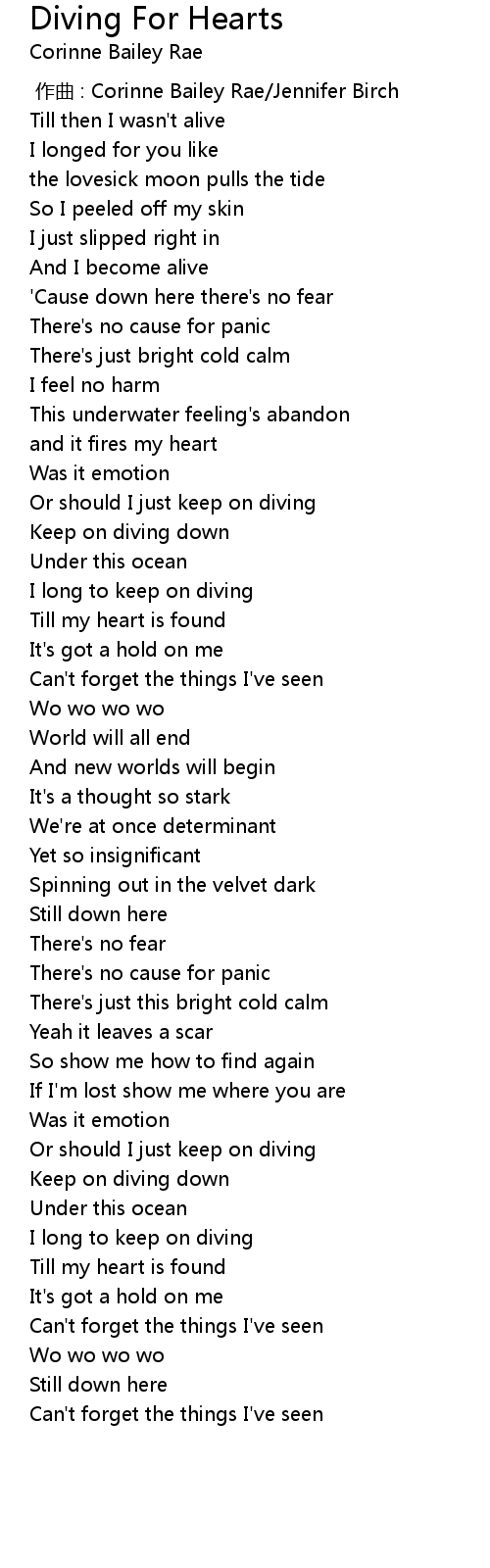 | 歌曲 | Diving For Hearts |