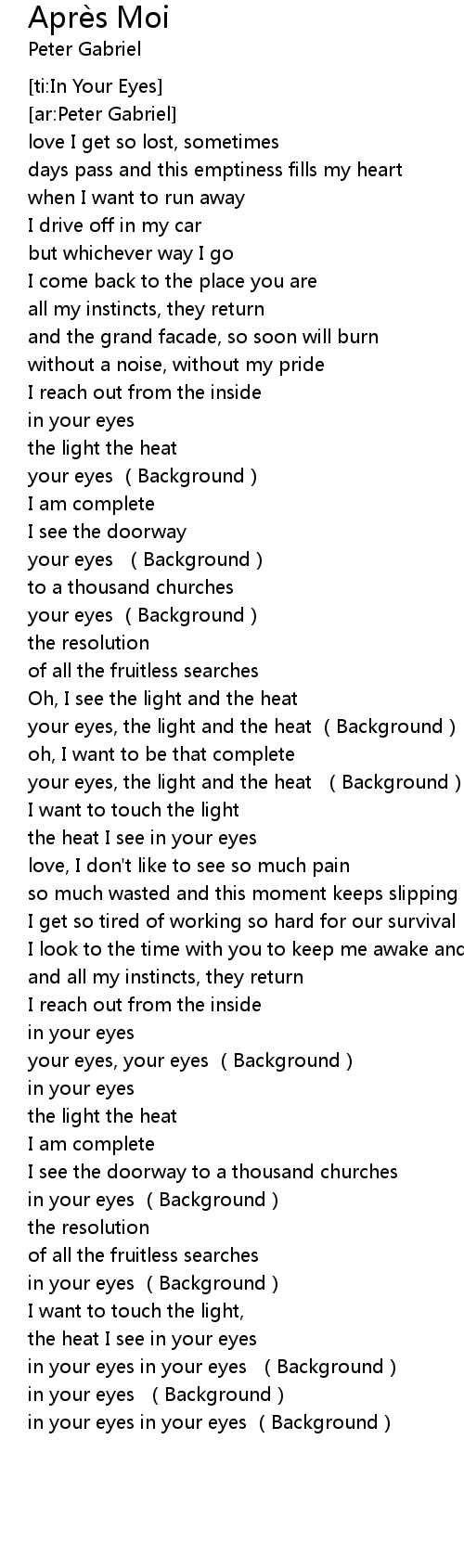 | [04:26.00] | in your eyes in your eyes Background |
