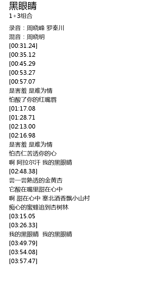 | [03:39.53] | 我的黑眼睛 我的黑眼睛 |