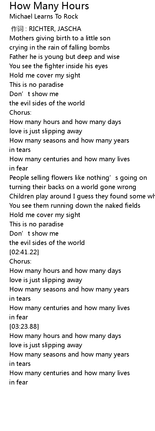 | [02:46.05] | How many hours and how many days |