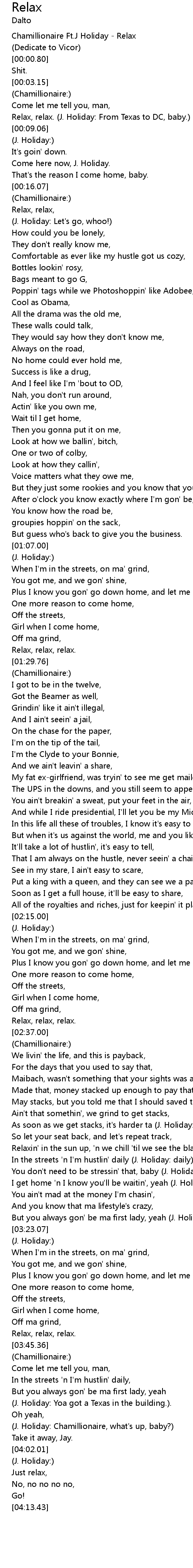 As soon as we get stacks, it's harder ta (J. Holiday: relax, relax), |