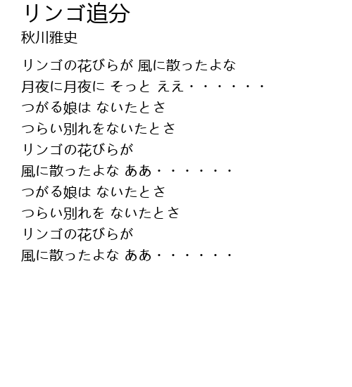 | リンゴの花びらが 風に散ったよな | |