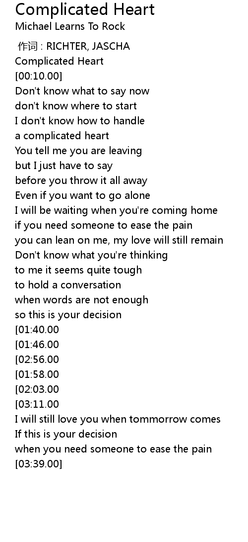 | [00:00.00] | Complicated Heart |