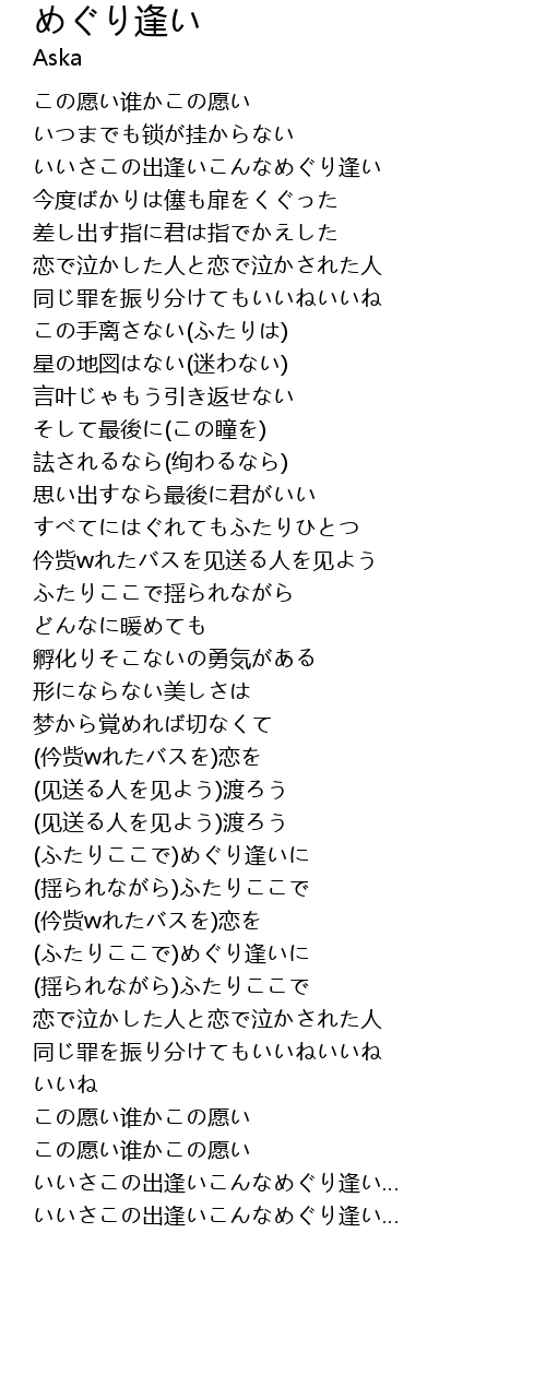 | [03:40.72] | (ふたりここで)めぐり逢いに |