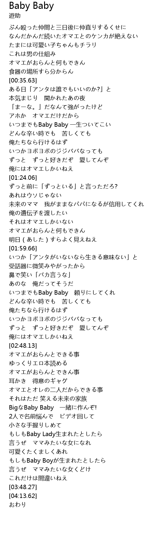 | [00:59.90] | いつまでもBaby Baby 一生ついてこい |