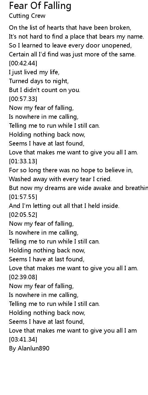 Now my fear of falling, |