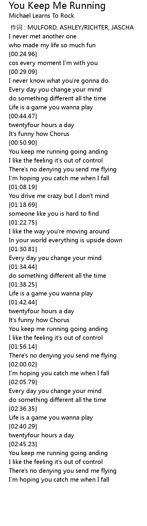 | [02:46.47] | You keep me running going anding |