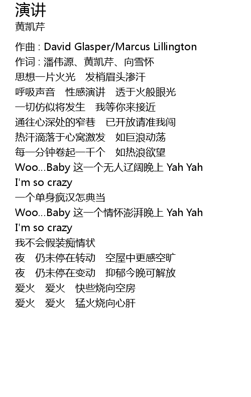 | 作词 : 潘伟源、黄凯芹、向雪怀 | |