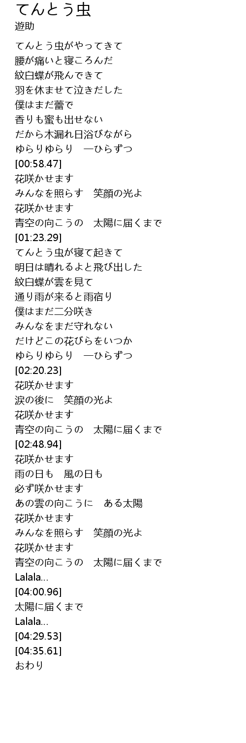 | [01:33.48] | てんとう虫が寝て起きて |
