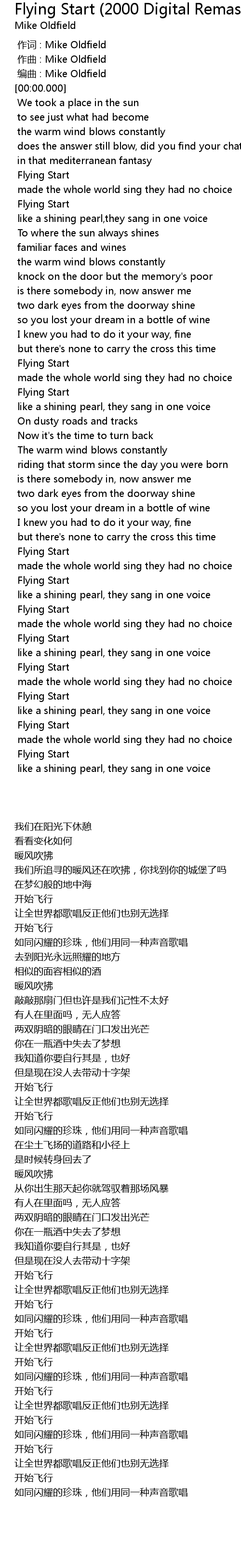 | [00:00.000] | 编曲 : Mike Oldfield |