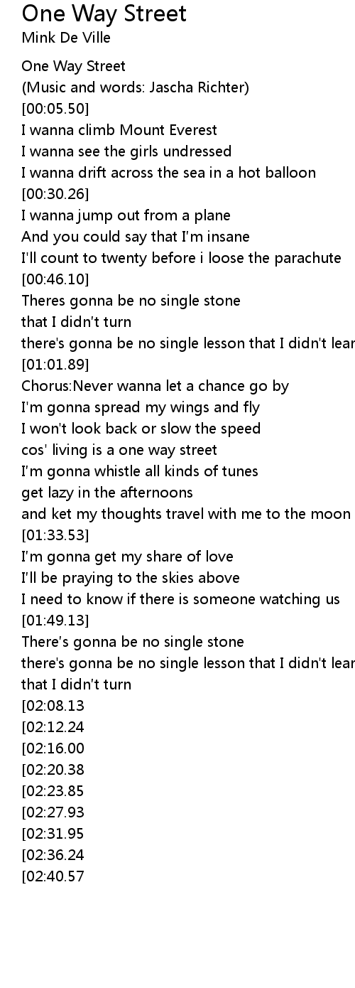 | [03:39.44][02:36.24] | cos' living is a one way street |