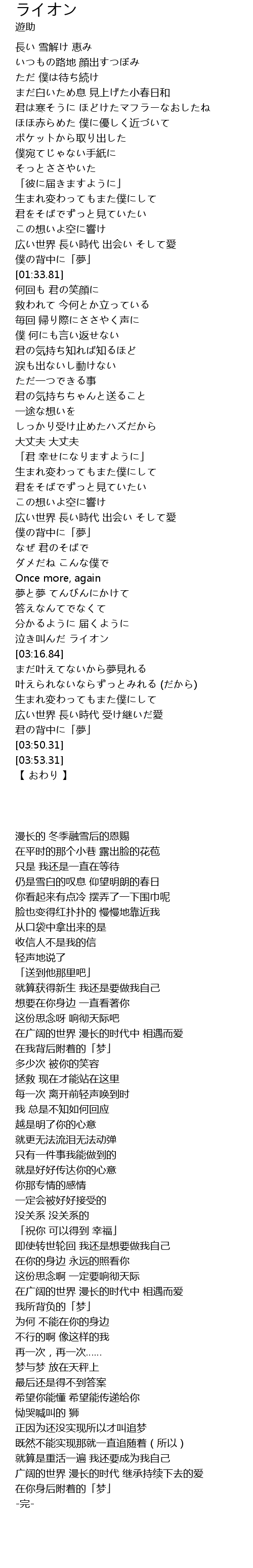 | [02:43.23] | 広い世界 長い時代 出会い そして愛 |