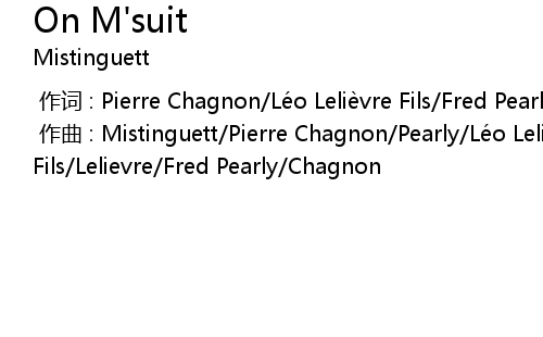 | [00:00.000] | zuo qu : Mistinguett Pierre Chagnon Pearly Le o Lelie vre Fils Lelievre Fred Pearly Chagnon |