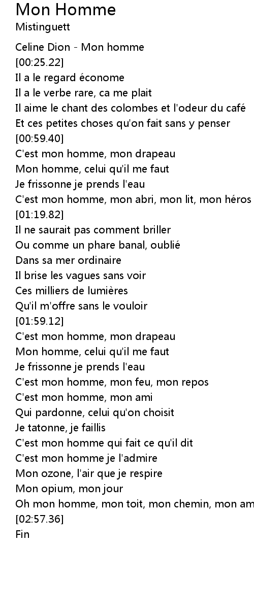 | [00:00.00] | Celine Dion - Mon homme |