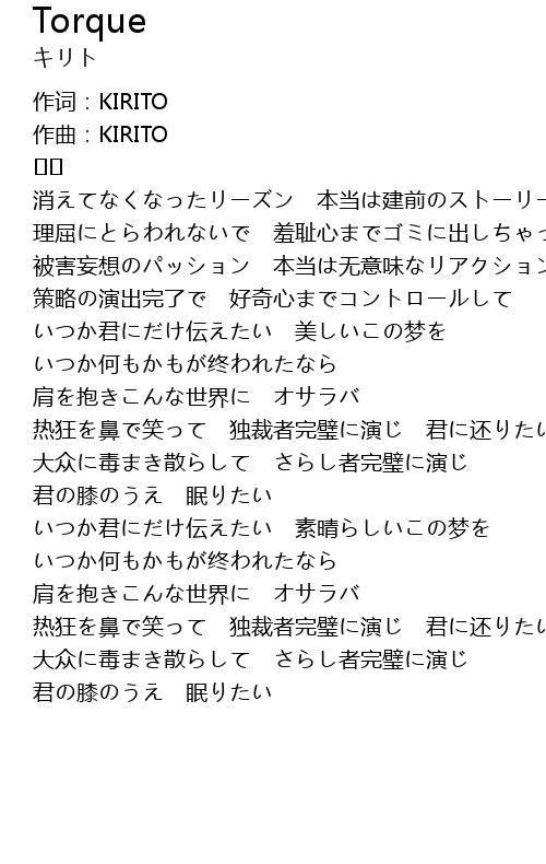 | 作词:KIRITO | |