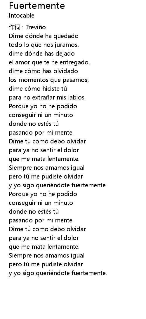 | 歌曲 | Fuertemente |
