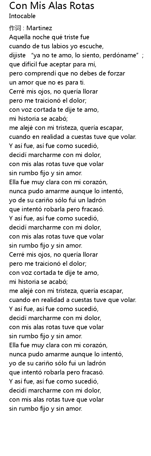 | 歌曲 | Con Mis Alas Rotas |