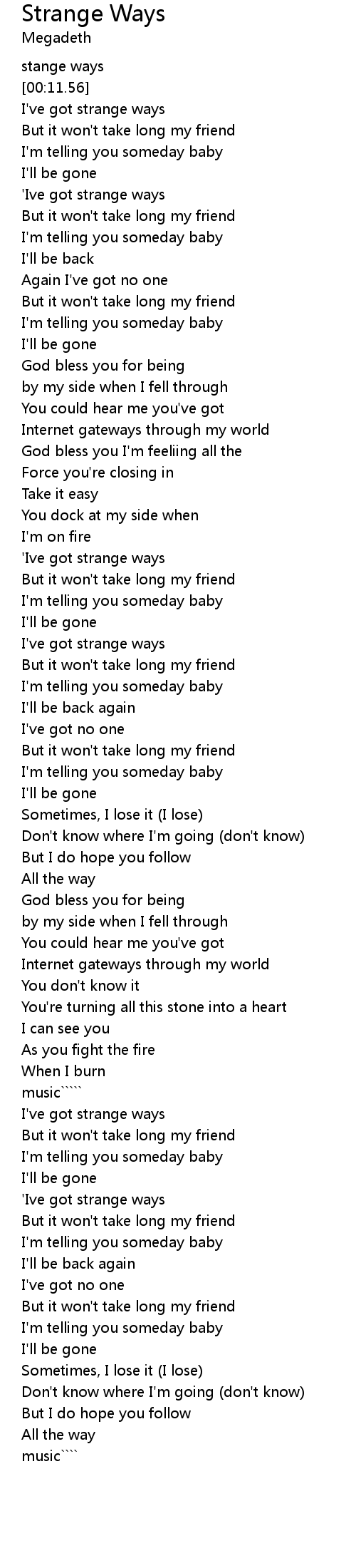 | [00:17.21] | I've got strange ways |