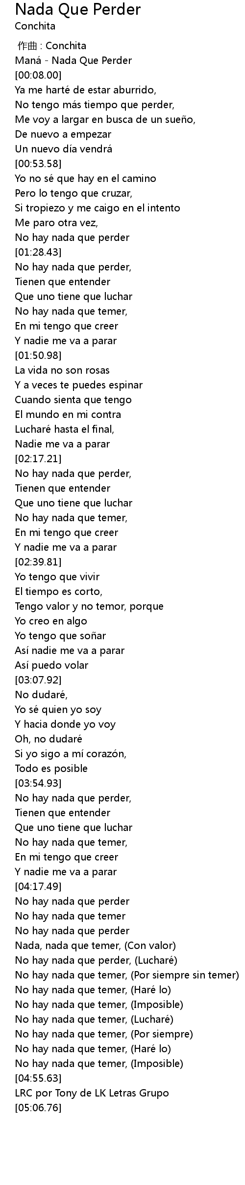| [04:31.95] | No hay nada que perder, (Lucharé) |