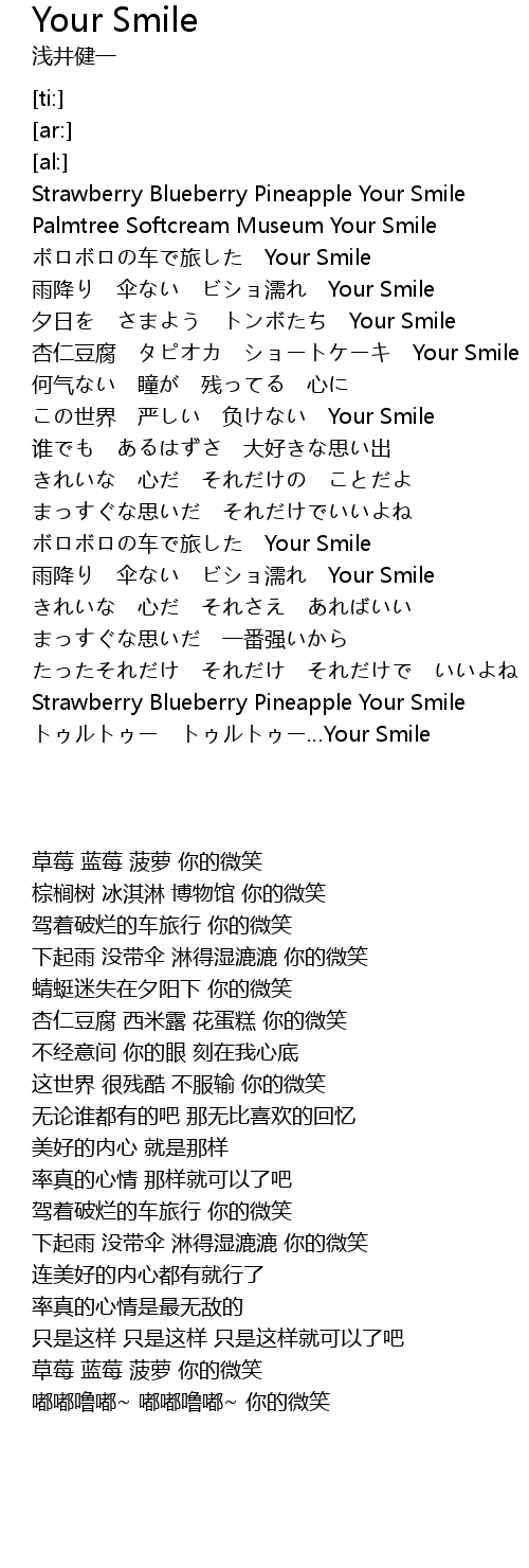 | [03:51.80] | Strawberry Blueberry Pineapple Your Smile |