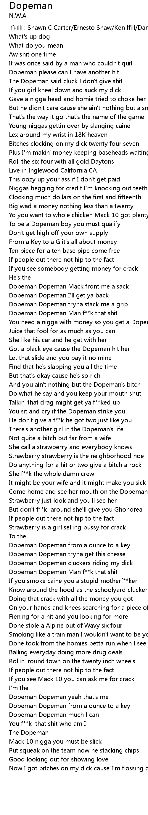 | [02:40.91] | Dopeman Dopeman Man f**k that shit |