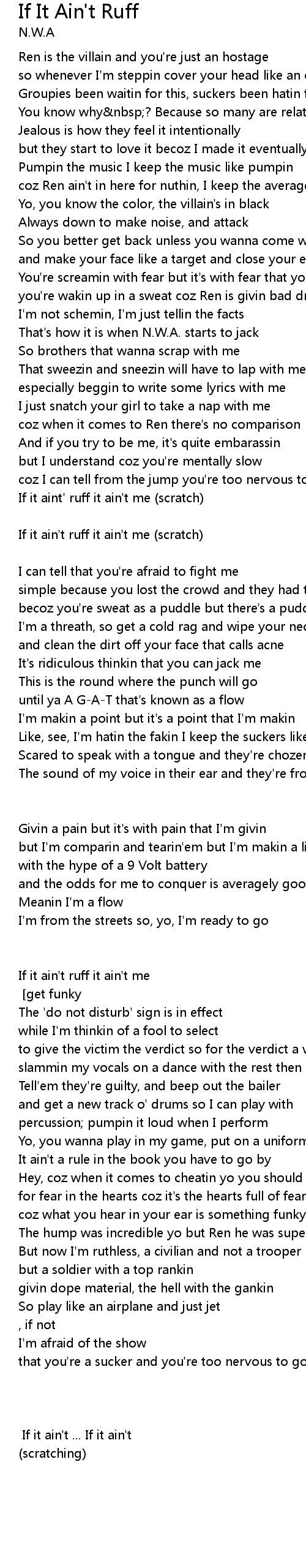 If it aint' ruff it ain't me (scratch) |