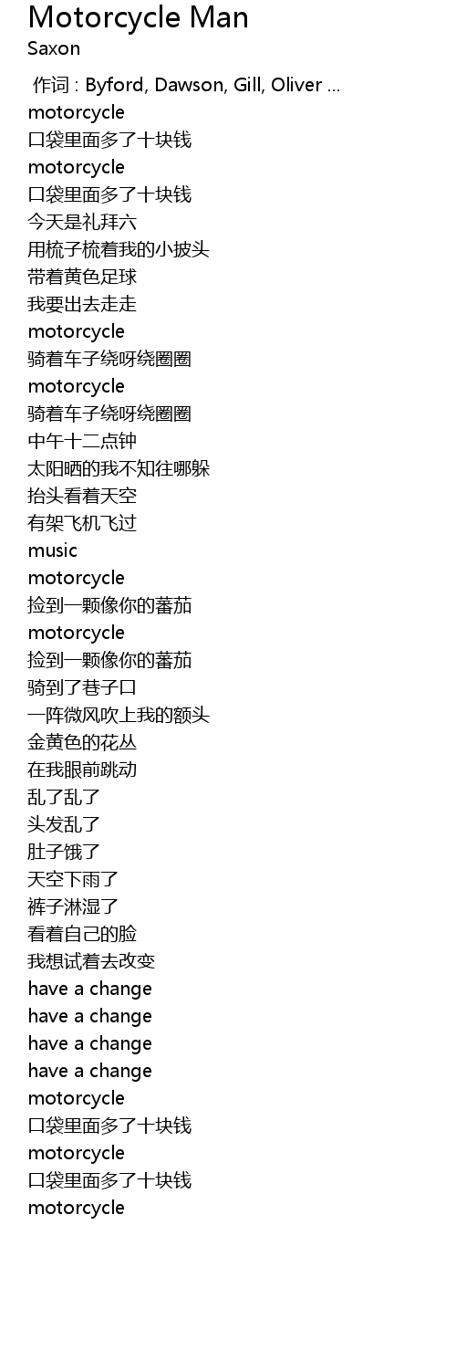 | 歌曲 | Motorcycle Man |