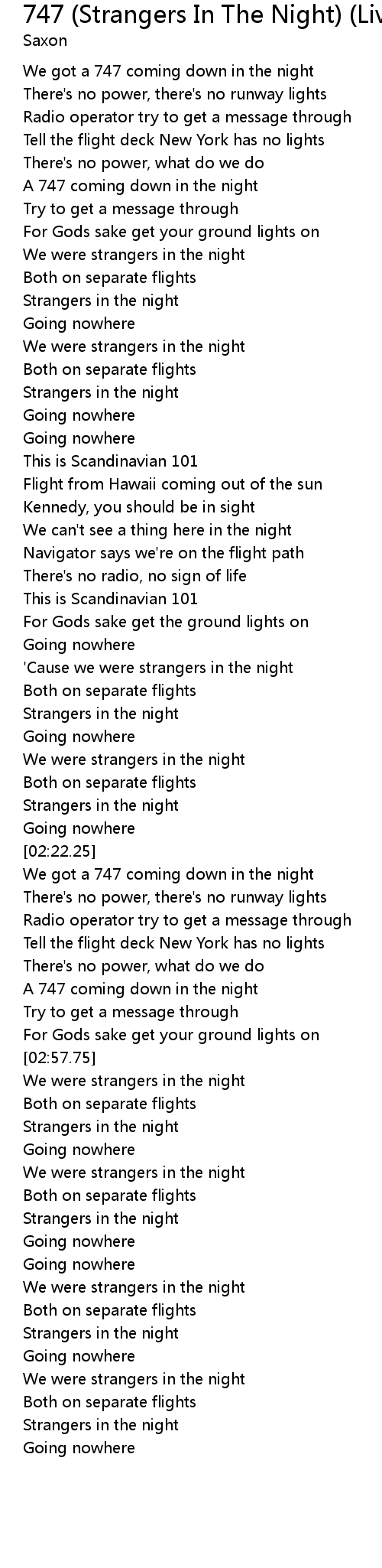 747 (Strangers In The Night) (Live) 歌词