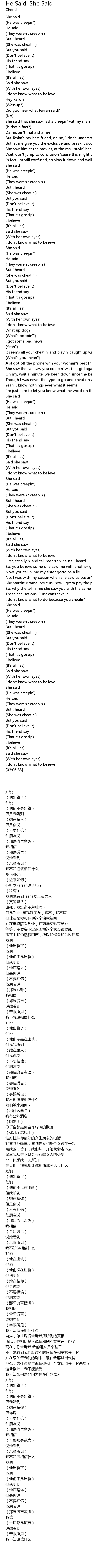 She said that she saw Tasha creepin' wit my man |