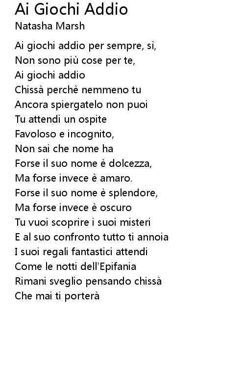 | Ai giochi addio per sempre, si, | |