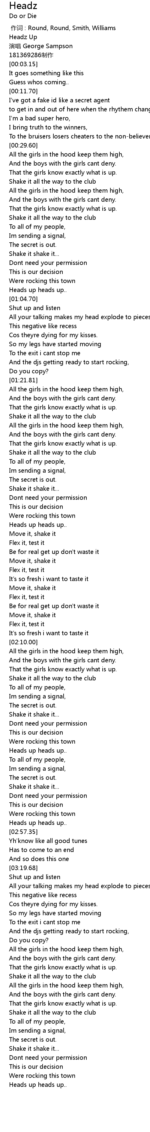 | [00:00.15] | Headz Up |