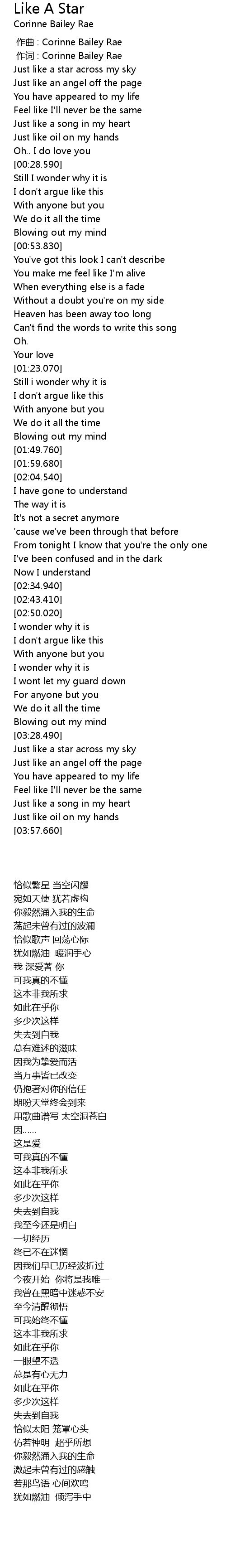 | [00:00.170] | 作词 : Corinne Bailey Rae |