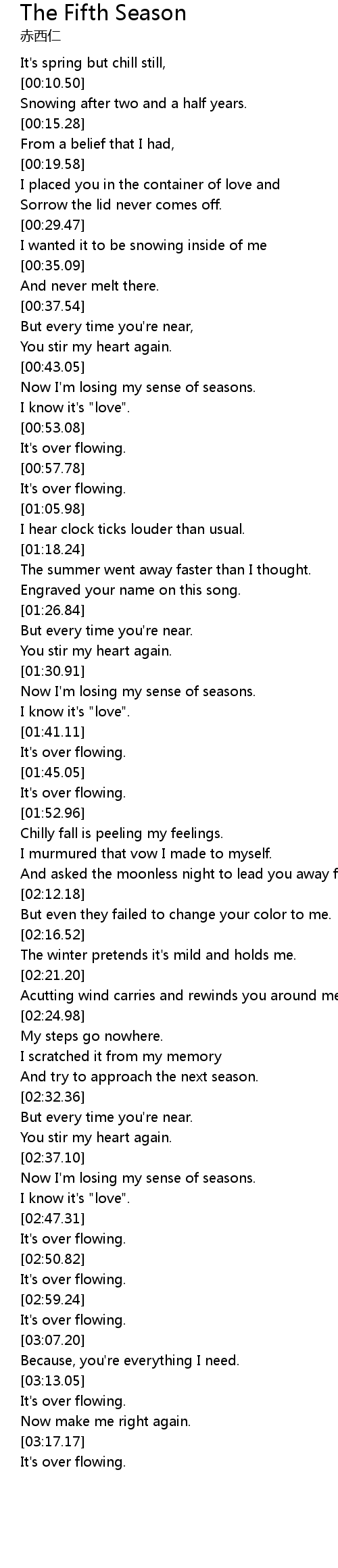 The Fifth Season 歌词
