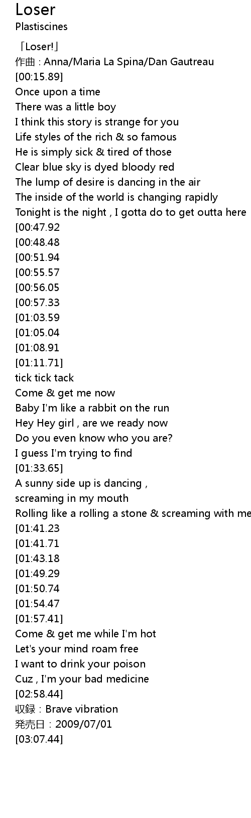 | [02:42.75][01:41.71] | Loser! |
