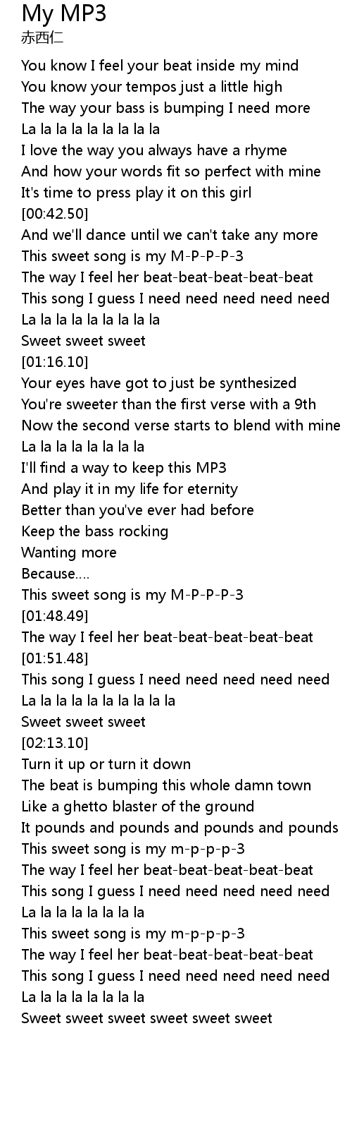 | [00:46.53] | This sweet song is my M-P-P-P-3 |