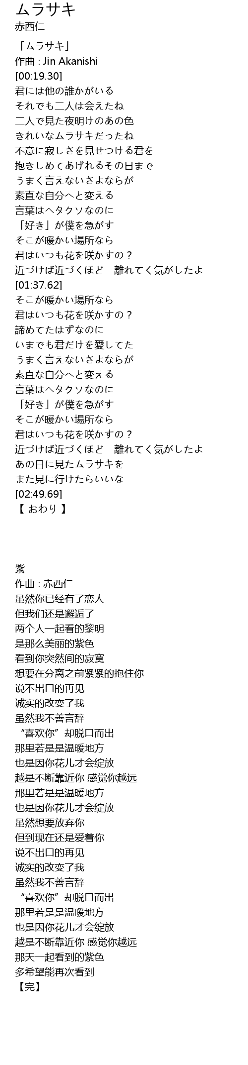 zuò qǔ Jin Akanishi |