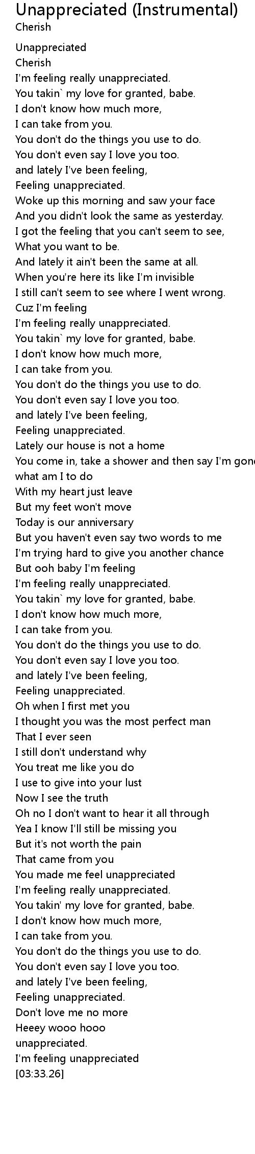 You made me feel unappreciated |