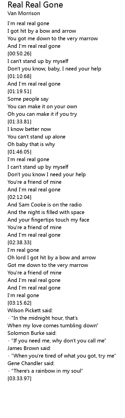 And I'm real real gone |
